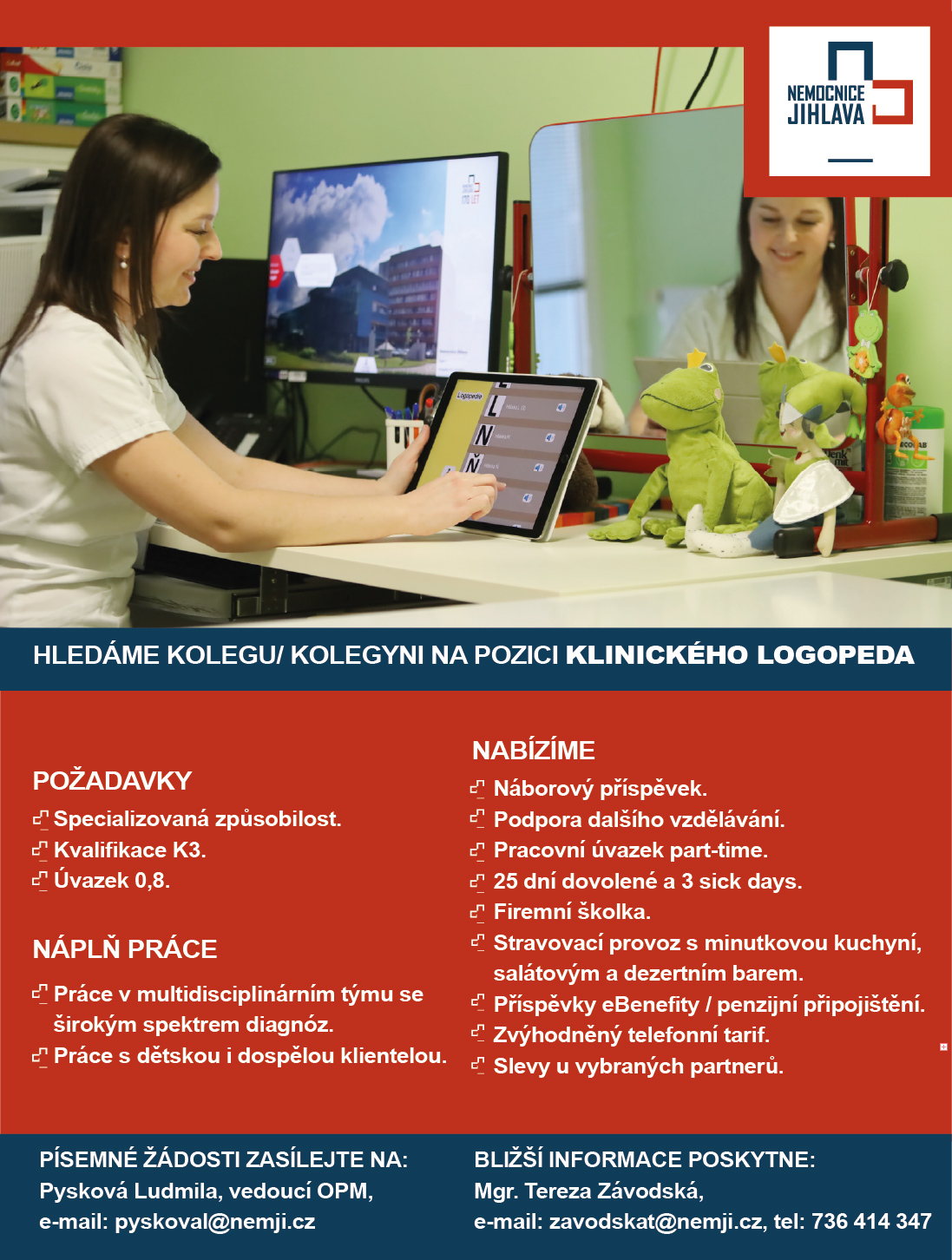 Nemocnice Jihlava hledá KLINICKÉHO LOGOPEDA