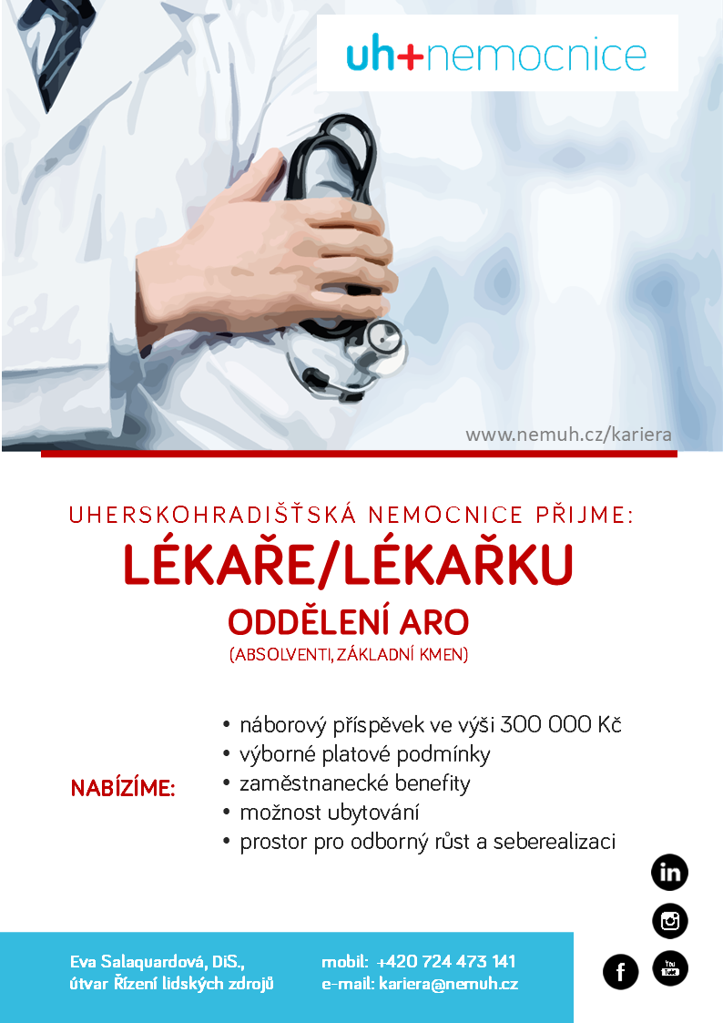 Uherskohradišťská nemocnice přijme lékaře/lékařku na oddělení ARO (absolventi, základní kmen)